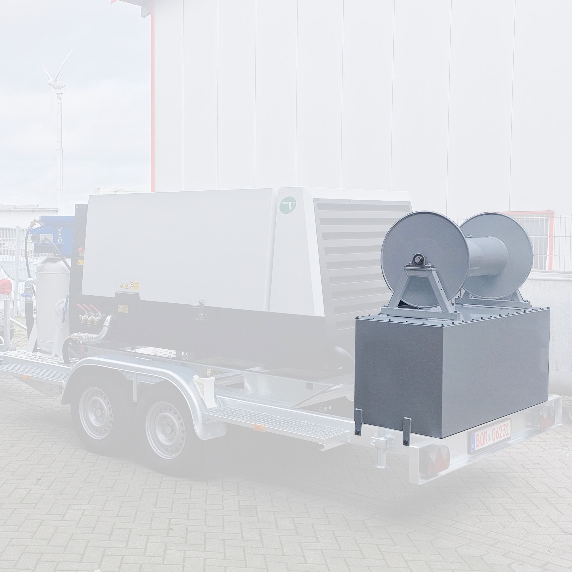 torbo 250 L water tank (complete) with hose reel for AC37 or AC50. Easily mounts to torbo trailers